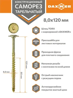 Саморез конструкционный Torx 8х300 (50шт)