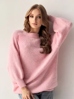 Пушистый вязаный свитер-платье с открытой спиной