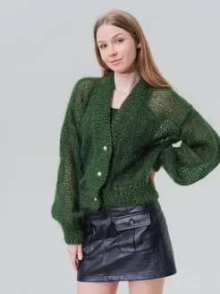 Кардиган паутинка вязаный из мохера