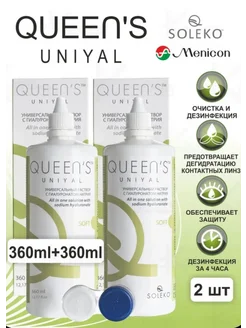 2 шт Раствор Queen's Uniyal, 360 мл + контейнер для линз