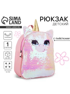 Детский рюкзак с пайетками Единорог, розовый
