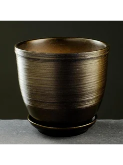 Керамический горшок для цветов черный с золотом