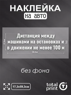 Наклейка "Дистанция между машинами не менее 100м", 1шт