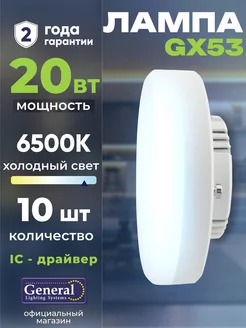 Лампа GX53 светодиодная 20 Вт холодный белый свет 6500K 10шт