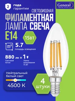 Филаментная светодиодная лампочка E14 свеча 15 Вт 4500К 4 шт