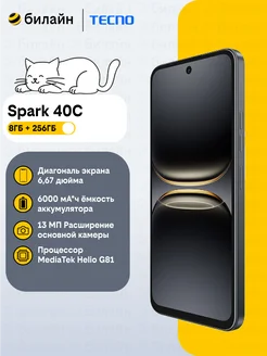 Смартфон Spark 40C 8 256GB «Чернильный чёрный»