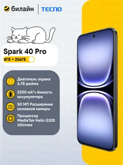 Смартфон Spark 40 Pro 8+256GB Чернильный чёрный