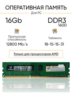 Оперативная память DDR3 16G 1600 для AMD процессоров
