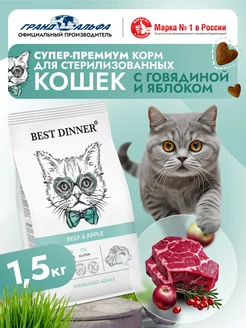 Корм для стерил кошек сухой Говядина яблоко 1,5 кг