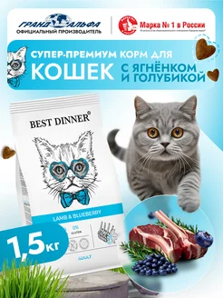 Корм для кошек сухой Ягненок голубика 1,5 кг