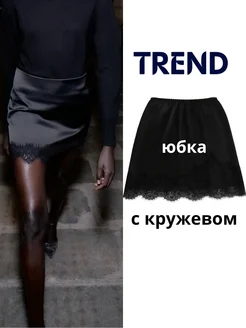 Юбка атласная с кружевом мини