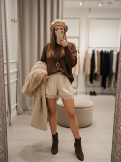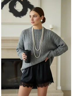 Вечерние шорты шелковые с кружевами короткие