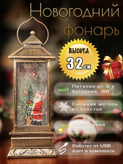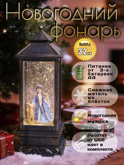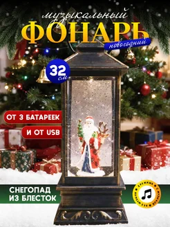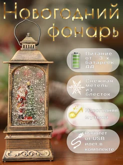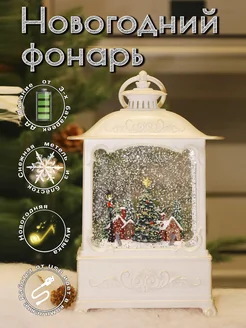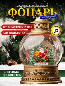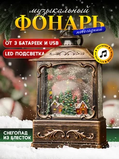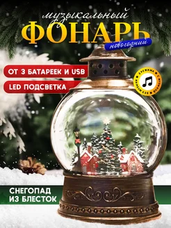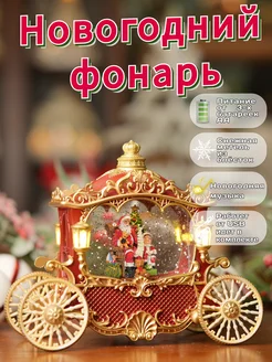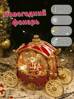 Фонарь новогодний музыкальный светильник со снегом Карета