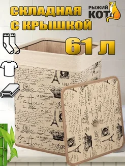 Корзина для белья большая с крышкой из бамбука 35х35х50см