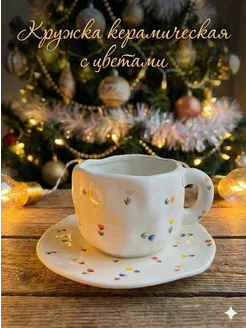Кружка керамическая с цветами 350 мл