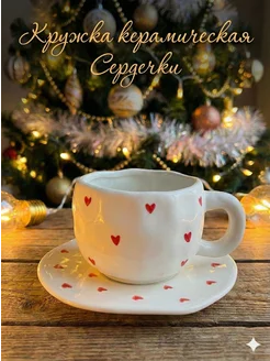Кружка керамическая для чая сердечки 350 мл