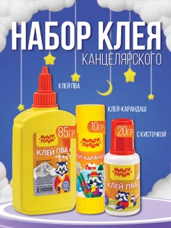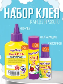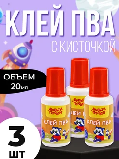 Клей ПВА с кисточкой 3 шт канцелярский для школы