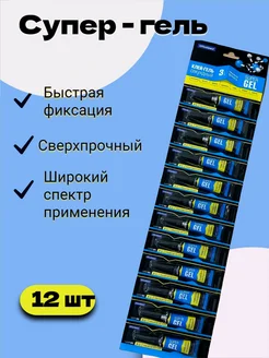 Супер клей универсальный гель секунда прозрачный 12 шт