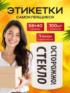 Рулон белых самоклеящихся стикеров Осторожно, хрупкое 100 шт