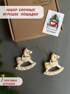 Набор елочных игрушек "Пряничная лошадка и домик» из фетра