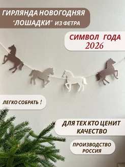 Гирлянда новогодняя "Лошадки" из фетра бежевая