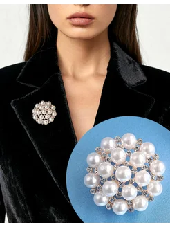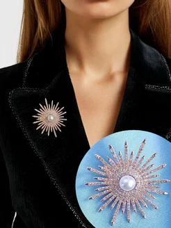 884 Брошь Звезда-Солнце с жемчугом и стразами