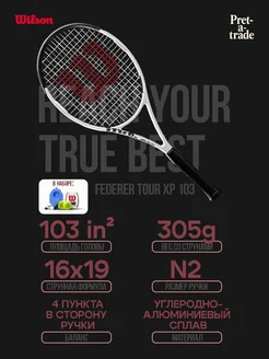 теннисная ракетка Federer tour XP 103, со струнами, 305г