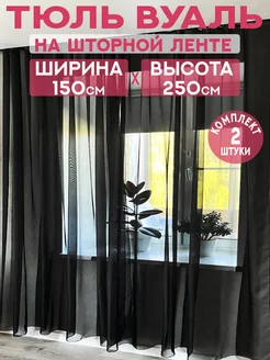Тюль черный в гостиную спальню длинный 150х250 см к-т 2шт