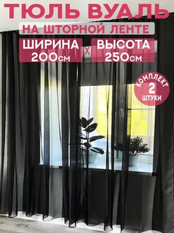 Тюль черный в гостиную спальню длинный 200х250 см к-т 2шт