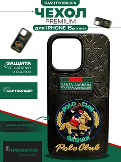 Чехол на iPhone 15 Pro Max с принтом POLO CLUB кожаный