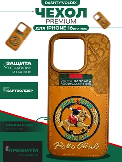Чехол на iPhone 16 Pro Max с принтом POLO CLUB кожаный