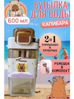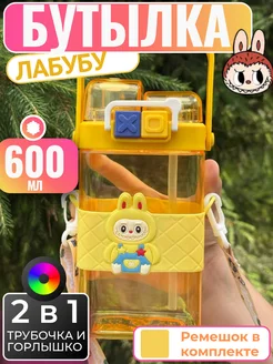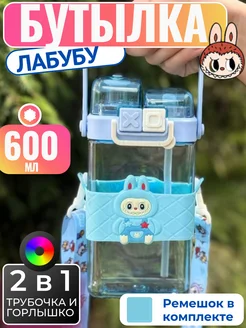Бутылка для воды детская Лабубу с трубочкой и горлышком