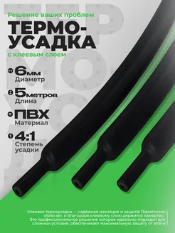 Термоусадка клеевая трубка для проводов 6мм 5 м