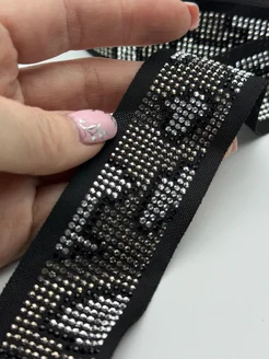 Лампас эластичный со стразами 40 мм * 4 м Черный