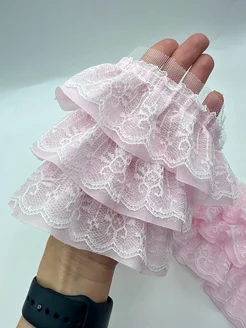 Кружево трехслойное гипюр ажурное 10-15 см отрез 2 м Розовое