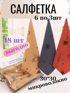 Салфетки из микрофибры кофе 30*30 см 18 шт(6 по 3шт)