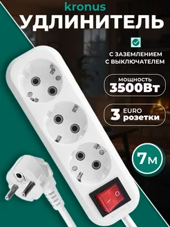Удлинитель сетевой 3 розетки с заземлением 7 м