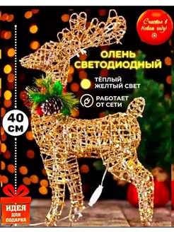 Новогодний олень светящийся золотой