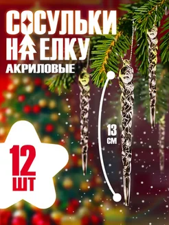 Новогодние елочные игрушки - набор украшений Сосульки 12 шт