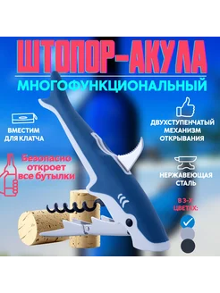 Штопор АКУЛА голубого цвета для вина нарзанник для сомелье