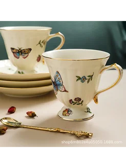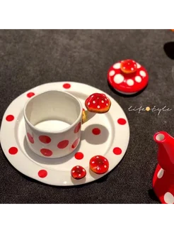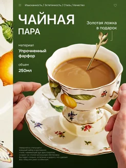 Красивая кружка для чая керамическая с блюдцем и ложкой