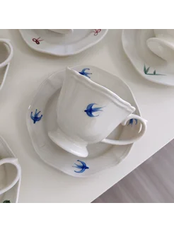 Чайная пара кружка с блюдцем керамическая с ласточками