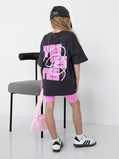 Костюм для девочки с велосипедками и футболкой оверсайз