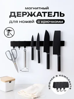 Магнит для ножей настенный 40 см с крючками