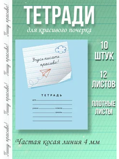 Тетрадь в частую косую линию 4 мм, 12 л, 10 шт
