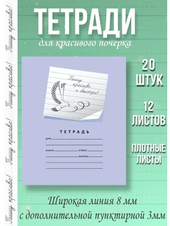 Тетрадь в широкую линию 8 мм 3 мм, 20 шт, 12 л Мазина В.Д