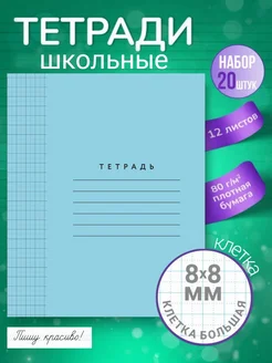 Тетрадь в крупную клетку 12 л, голубая (20 шт)