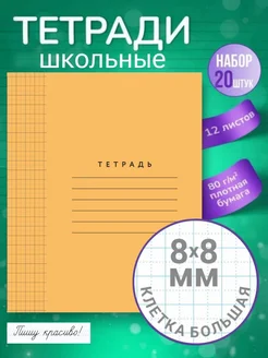 Тетрадь в крупную клетку 12 л, 20 шт, оранжевые