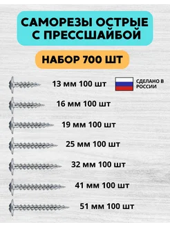 Саморезы с прессшайбой острые цинк набор 700 шт