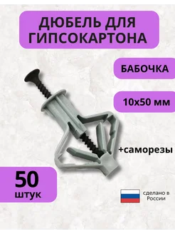 Дюбель для гипсокартона бабочка + саморезы 50 шт